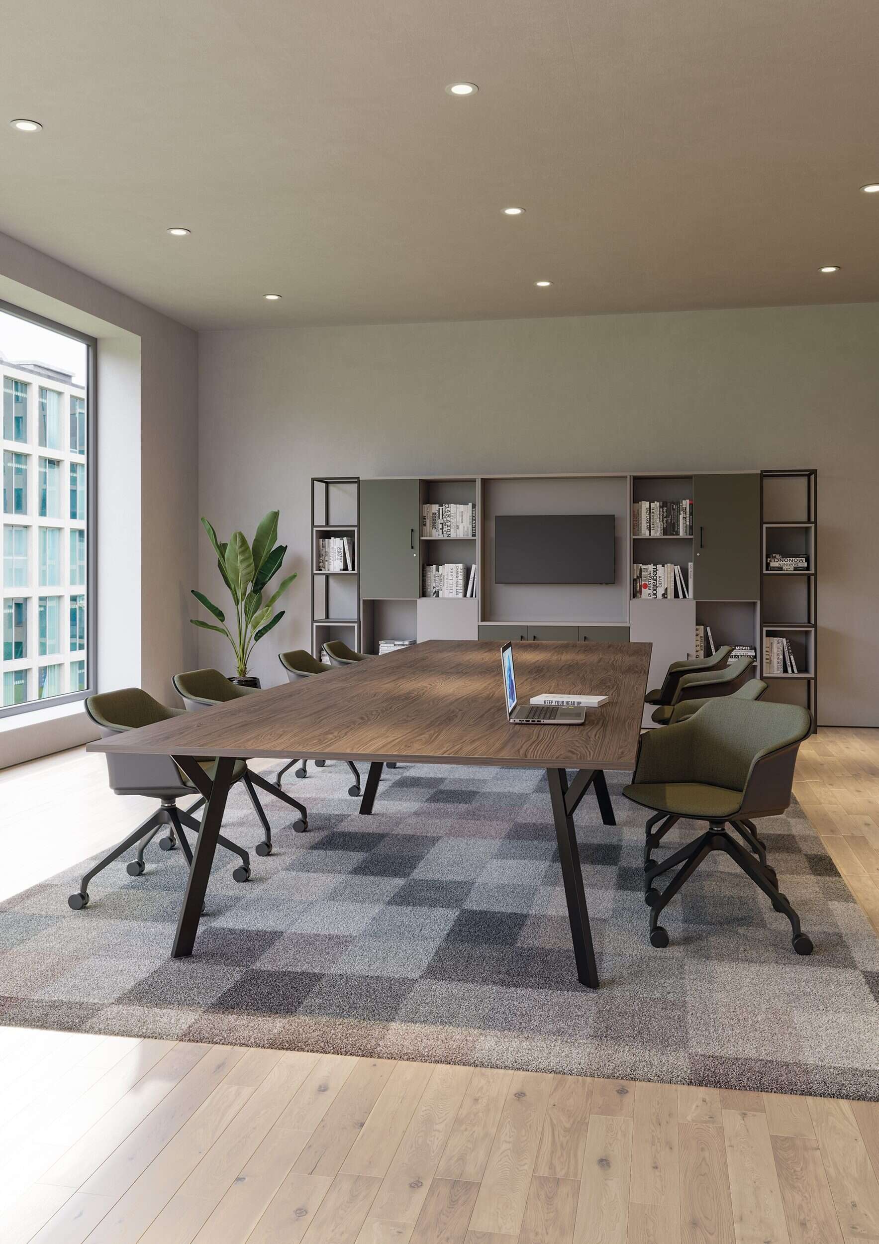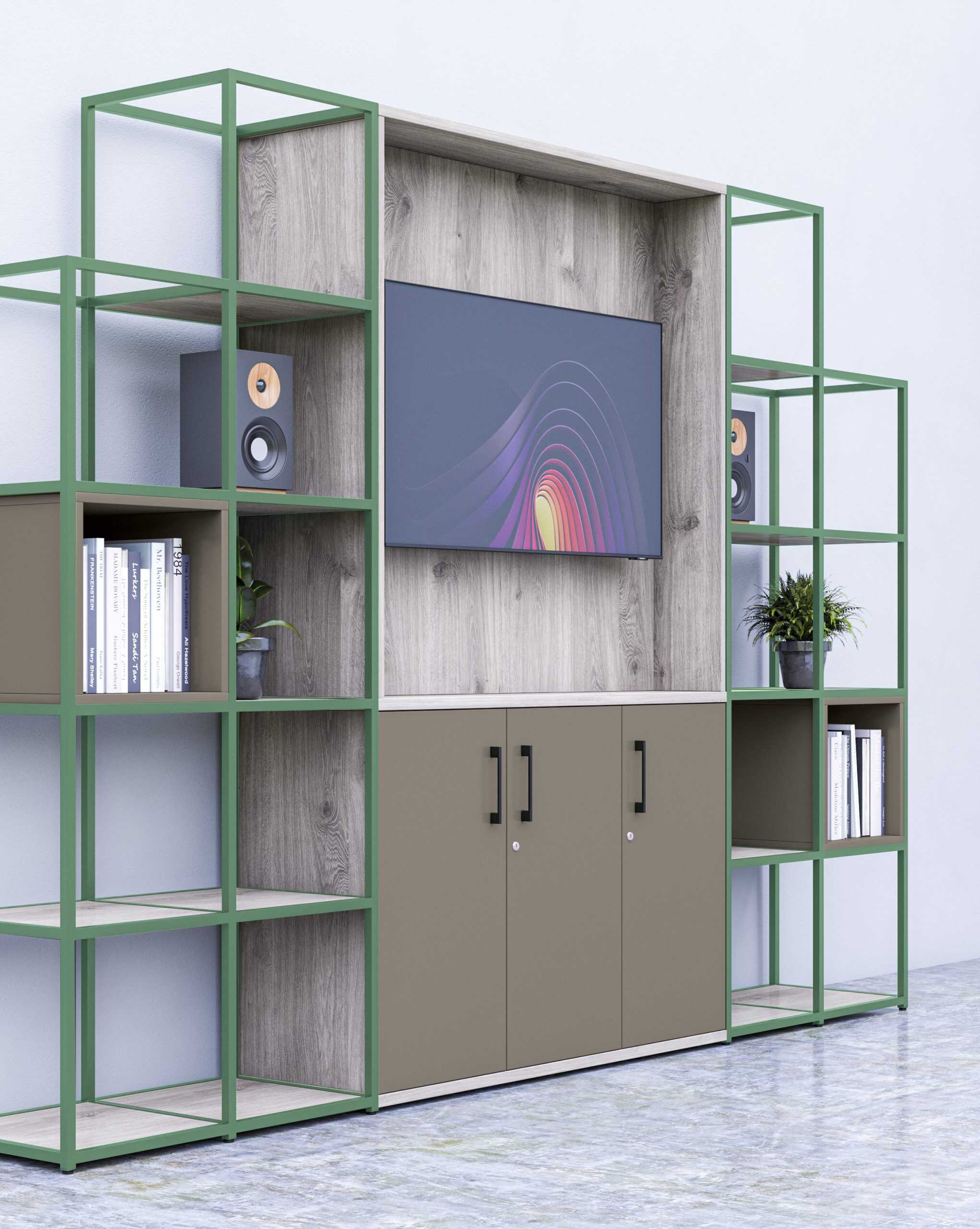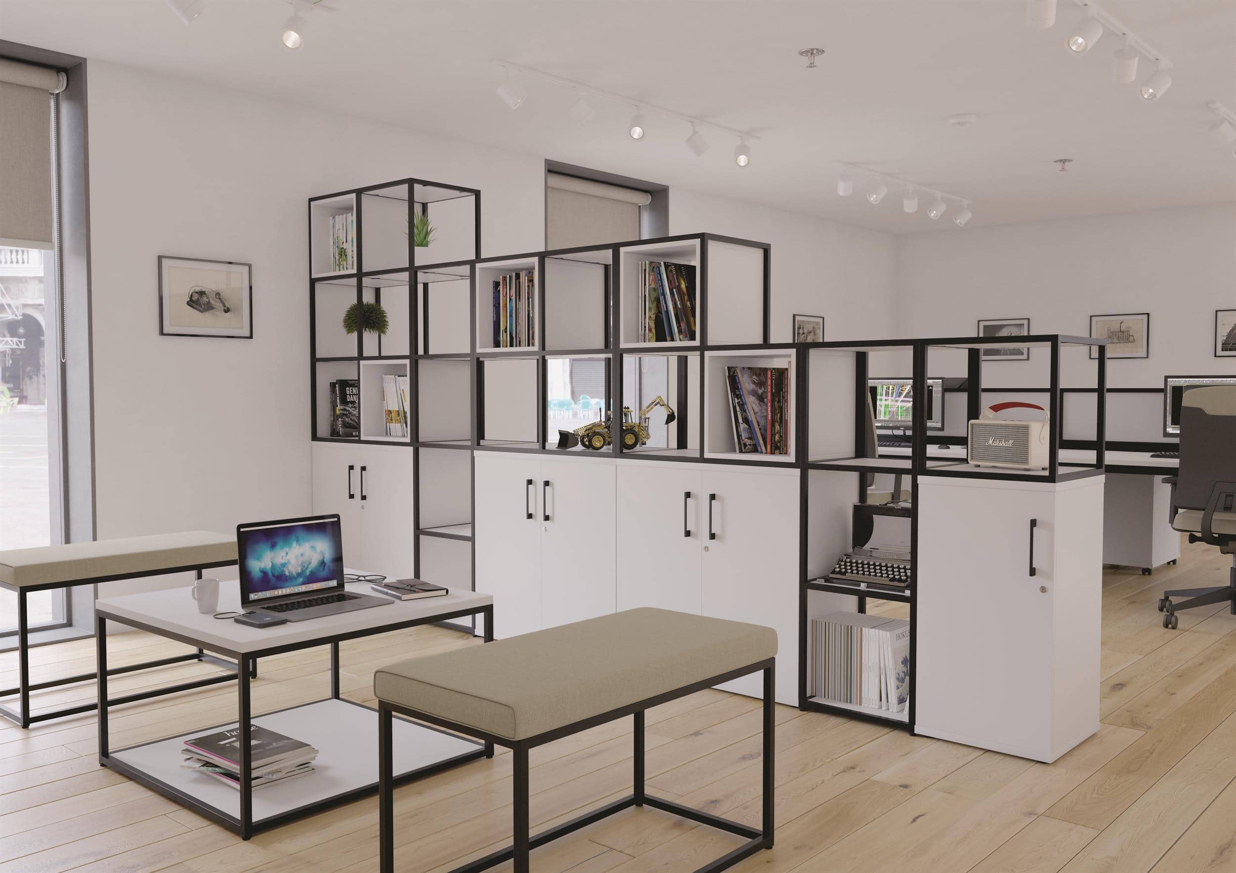 Storage units complement the framework to provide practical organisation alongside the zoning function, while planter box options make it straightforward to introduce biophilic elements into the workspace. The range also extends to tables and seating, offering a complete solution for breakout and collaborative areas within the office.