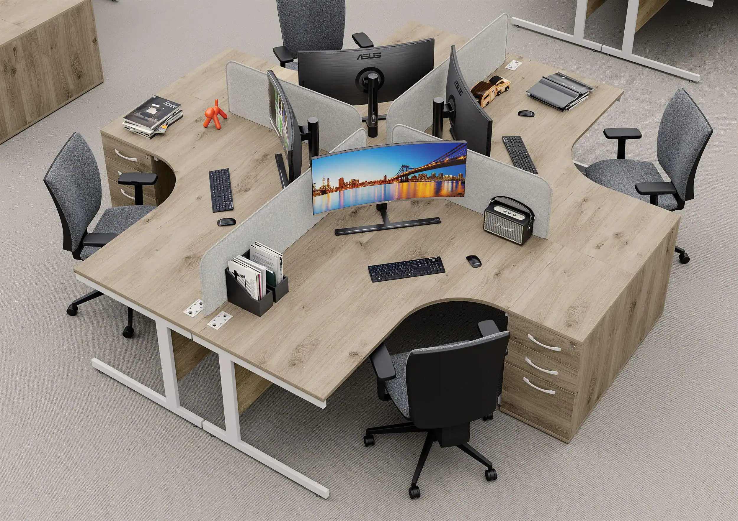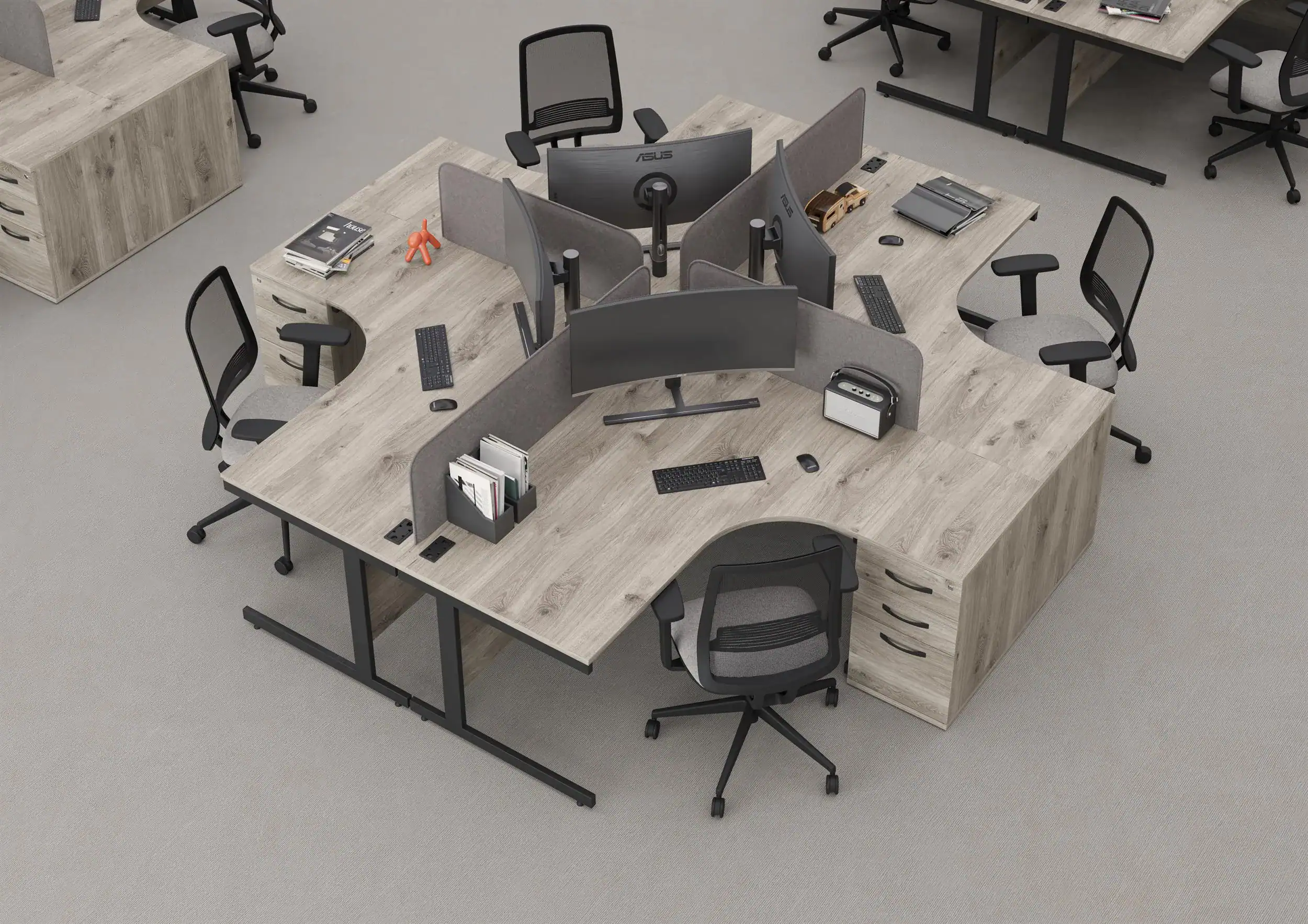 Combination desks provide a more contemporary option within the range, and all desks come with metal fixings and adjustable feet as standard. Optional links and cable management solutions allow the range to be tailored to suit individual workspace requirements.