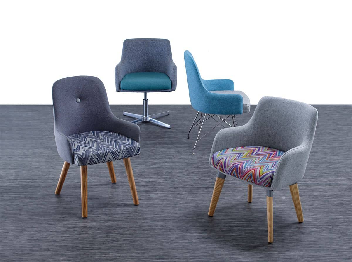 Both the Yin and Yang are available across a choice of frames including ash or beech wooden legs and chrome sled frame, with a height-adjustable chrome four-star swivel base also available. Two-tone upholstery options allow further personalisation, and the Yin additionally offers a button back detail for a more classic character. A range that brings genuine intrigue and visual interest to any reception, breakout or collaborative space.